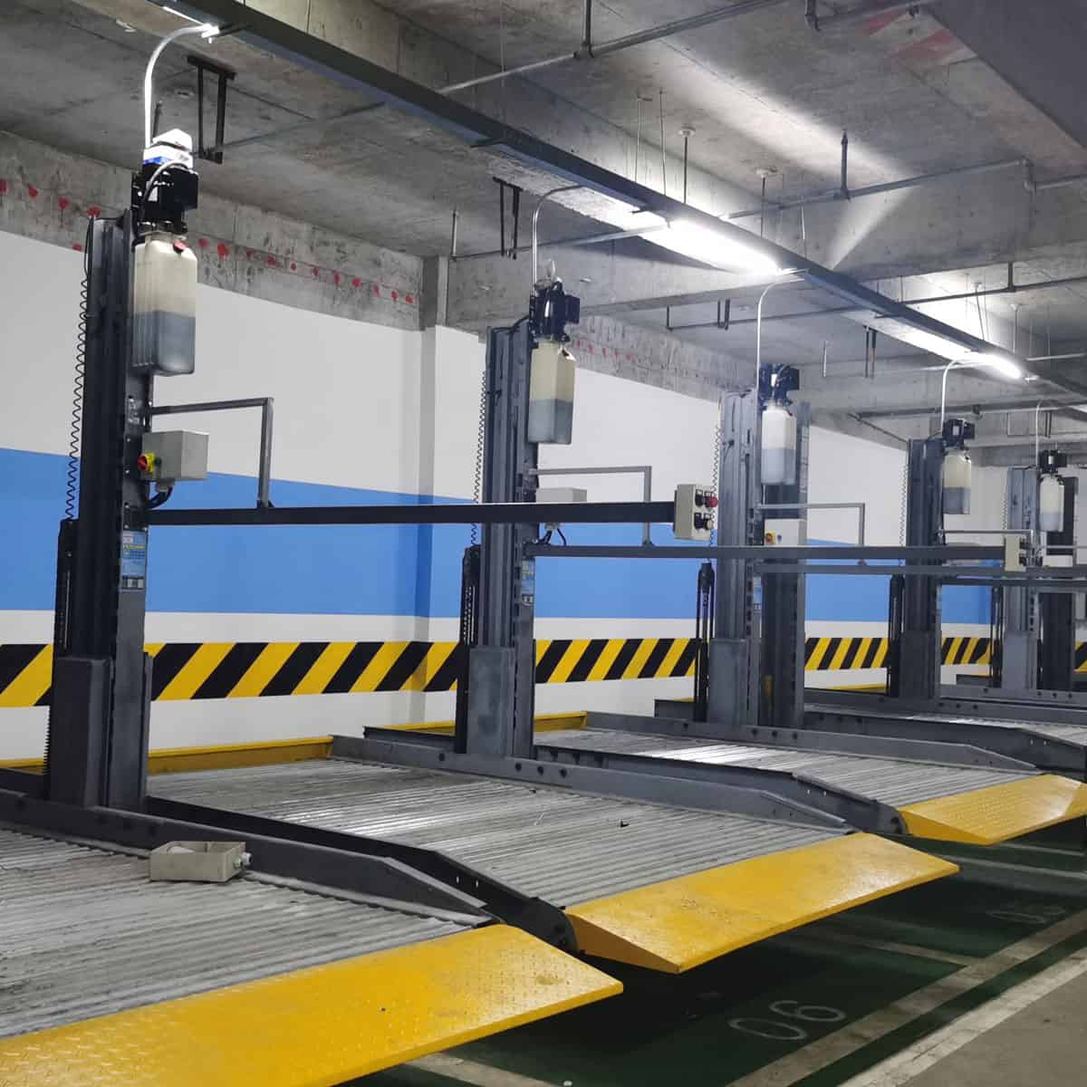 立体车库载车板中也有强度高装配简便的,耀辉金属制品有限公司讲述,它包括两根槽钢作成的长边梁,长边梁构成载车板的两个长边,在长边梁的两端,有两根槽钢作成的短边梁,长边梁和短边梁用螺栓连接,构成载车板的矩形四边,在矩形四边内安装着等宽的钢花纹板,钢花纹板的两端安装在长边梁的槽中,摆满了整个载车板,钢花纹板的横向剖面为开口向下的U形,相邻的钢花纹板用2-3个螺栓连接。